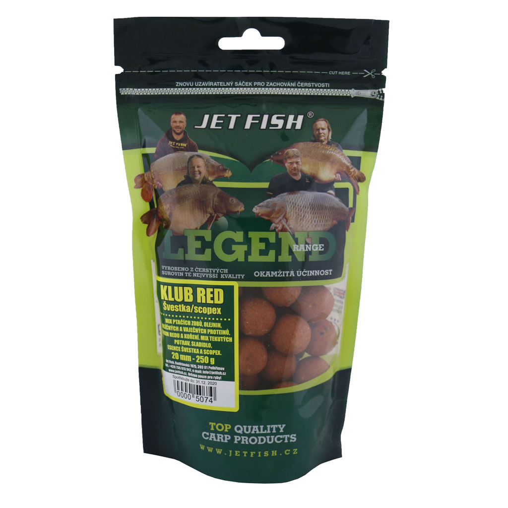 Jet Fish boilie Legend Range Klub Red švestka scopex 250g 20mm