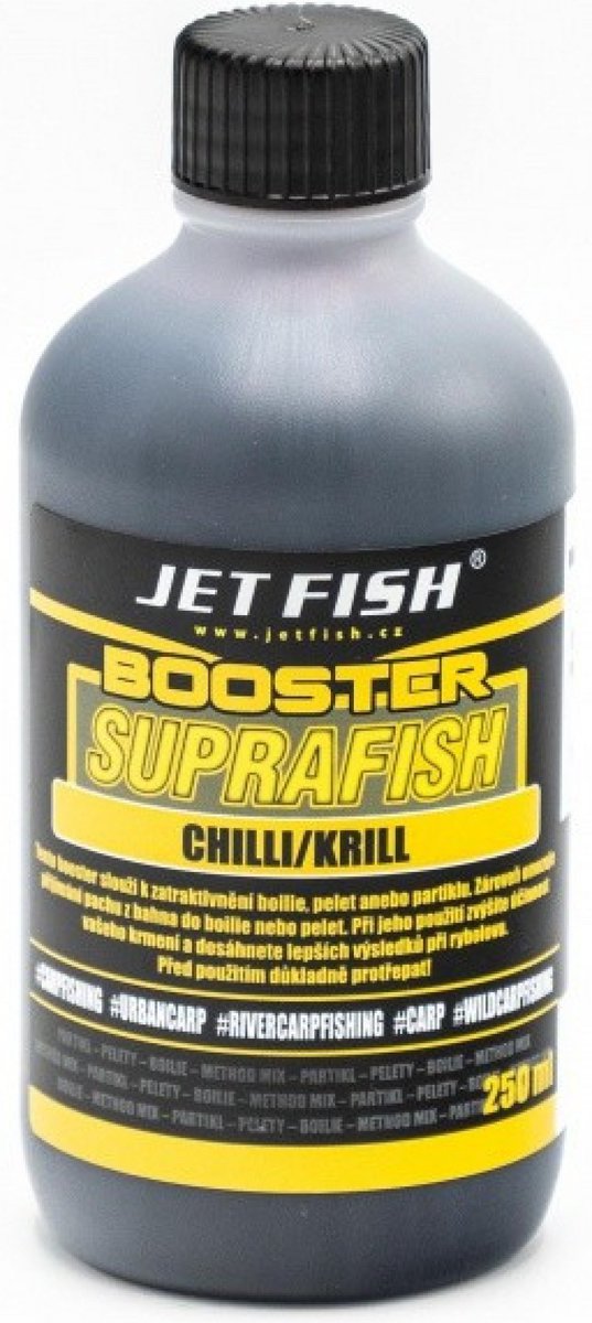 Boostery Suprafish jsou sestaveny tak, aby fungovaly skvěle jak v teple, tak i ve studené vodě. Jsou určené pro boosterování nejen boilie, ale i pelet, partiklu a mohou se použít i do method mixů. Při chytání na bahnitém dně doporučujeme booster smíchat s vodou a nechat návnady nasáknout několik hodin před nakrmením. Zabrání se tak přijímání pachu bahna do boilie. Je to vynikající způsob, jak úspěšně chytat na bahnitém dně.