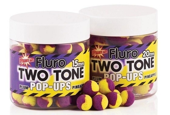 Dynamite Baits Pop-Ups - Fluro Two Tone Švestka & Ananas 15mm nebo 20mm - velikost uvědte do poznámky k objednávce. • Rozšíření řady mimořádně úspěšných plovoucích boilií Fluro Pop-Up • Dává rybáři přidanou hodnotu v současném užití dvou chutí a barev v jediné návnadě! • Ohromující návnada pro chytání kaprů