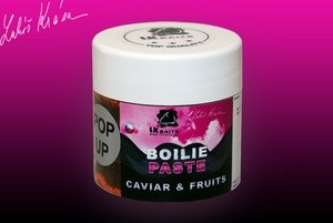 Při rybaření občas vznikají situace, kdy je potřeba odlišit nebo zvýraznit vaši nástrahu. Team LK Baits vyvinul jako první v České republice a možná i v Evropě plovoucí pastu k okamžitému použití! Nanesením vrstvy plovoucí hmoty nejen, že zatraktivníte nástrahu, ale díky ní můžete boilie, peletu nebo partikl odlehčit a vytvořit z ní kriticky vyváženou nástrahu (háček leží na dně a boilie plave). Pokud chcete, aby se pasta omývala pomaleji, stačí nechat více zaschnout nebo povařte a až poté nechte zaschnout. Tím si vytvoříte dlouhodobou neutrální nástrahu přesně podle Vašich požadavků. Další z moha výhod je použití plovoucí pasty při chytání na bahnitém dně nebo nad vodní řasou. Vaše montáž lehce dopadne na dno. Plovoucí pasta má výživnou hodnotu s obsahem proteinů 38,5g/100 g! Balení 150 ml.
