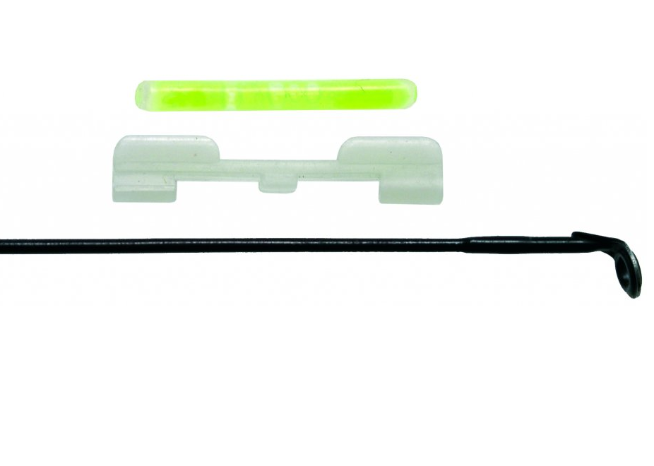 Držák nacvaknete na špičku prutu a světýlko nacvaknete do držáku.