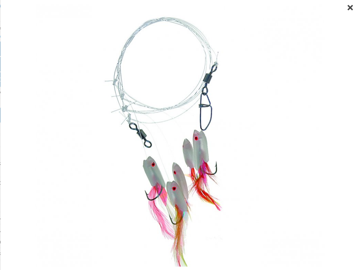 Návazec obsahuje velké fosforeskující korále, pevný obratlík a karabinu k rychlé výměně spodního závaží, nebo pilkeru.