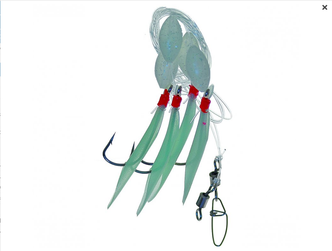 Návazec obsahuje velké fosforeskující korále, pevný obratlík a karabinu k rychlé výměně spodního závaží, nebo pilkeru.