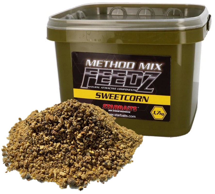 Method Mix nabitý kukuřičnými ingrediencemi. Najdete v nich drcené pelety, prémiový výběr drcených a tepelně upravených partiklů, směs koření nebo rybí moučky a sladidla. Method Mix je velmi lepivý a pojme až 30 % extra objemu v podobě přidaných pelet, drceného boilie nebo partiklu. Dodáváno v praktickém kbelíku s víkem. Příchuť: Sladká kukuřice