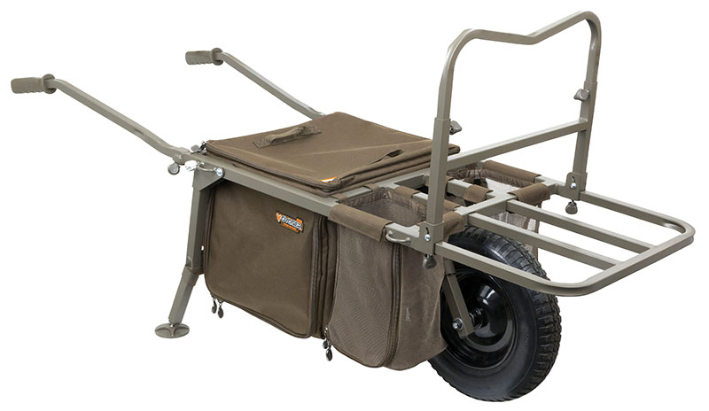 Založeno na stejném jedinečném designu jako původní Explorer barrow, ale s některými přidanými doplňky! Navrženo tak, aby umožňovalo rybářům lovit „mimo mohylu“, takže je ideální pro krátké rybáře, kteří se rádi pohybují, ale stejně tak dobré pro rybáře, kteří potřebují mít u sebe tyto nezbytné doplňky. Hlavní rozdíly oproti standardnímu Průzkumníku: delší ergonomicky tvarované, odnímatelné rukojeti, širší přihrádky a síťované kapsy na obou stranách kola pro uložení nezbytností, jako je láhev s vodou, nastavitelná výška na předním stojanu na barrow umožňující 2 x tašky Low Level nebo 1 x Low Level a 1 x Kompaktní taška Barrow, která se připojuje a dodává s taškou Voyager Under Barrow Bag Voyager Under Barrow Bag má tvrdou základnu, která zabraňuje prohýbání, odnímatelnou polici, která umožňuje oddělit úložné tašky, a boční přístupové zipy, které umožňují přístup k obsahu tašky bez vykládání vozíku. Dalším prvkem vaku Voyager Under Barrow Bag je vnější kapsa na zip, ve které je umístěn nepromokavý pláštěnka ve stylu Fox Camo. Obsahuje rozšiřitelný přední stojan na tašku – díky tomu mohou Voyager nebo Camolite Compact Barrow Bags nebo Low Level Bags (vše k dispozici samostatně) sedět přímo v přední části vozíku, když používáte vozík v „režimu relace“ a nosíte lehátko. Při denních rybařeních bez postele však jednoduše zasuňte přední stojan a otočte vaky Barrow/Low Level tak, aby směřovaly k vám. Konstrukce zajišťuje, že vozík zůstane vyvážený, ať už v režimu krátké nebo dlouhé relace Mezi další vlastnosti patří robustní ocelový rám s vysokou pevností v tahu, systém rychloupínacích kol s pneumatikou a otočné patky proti blátě s hroty Kompaktní design a velmi malé sbalení pro montáž do nejmenších kufrů auta Dodáváno se dvěma univerzálními popruhy na káru, které se připevňují na vozík pomocí smyčkových nástavců na rámu Kompatibilní s řadou zavazadel Voyager a Camolite
