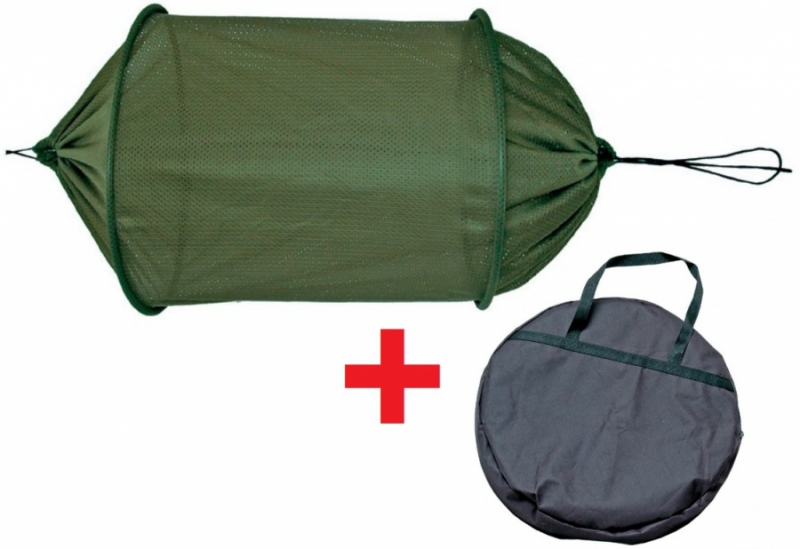 Velmi šetrný sak s kruhy na uchování ryb, s transportní taškou.