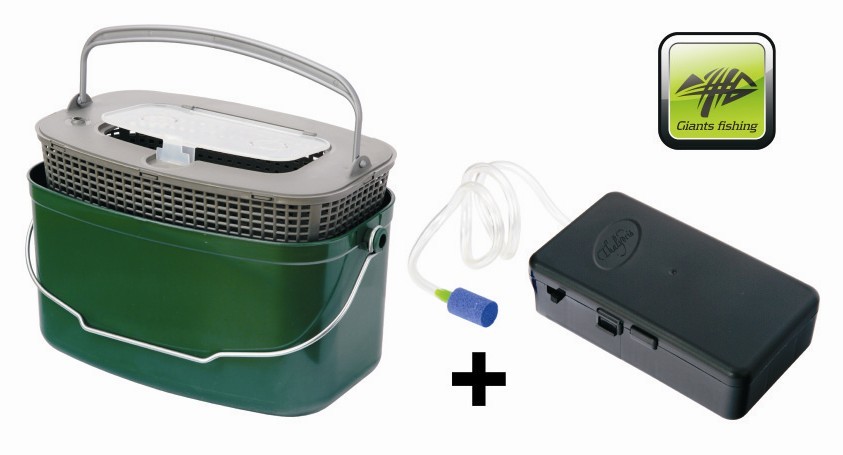 Bateriový vzduchovací motůrek, který je napájen dvěma bateriemi.