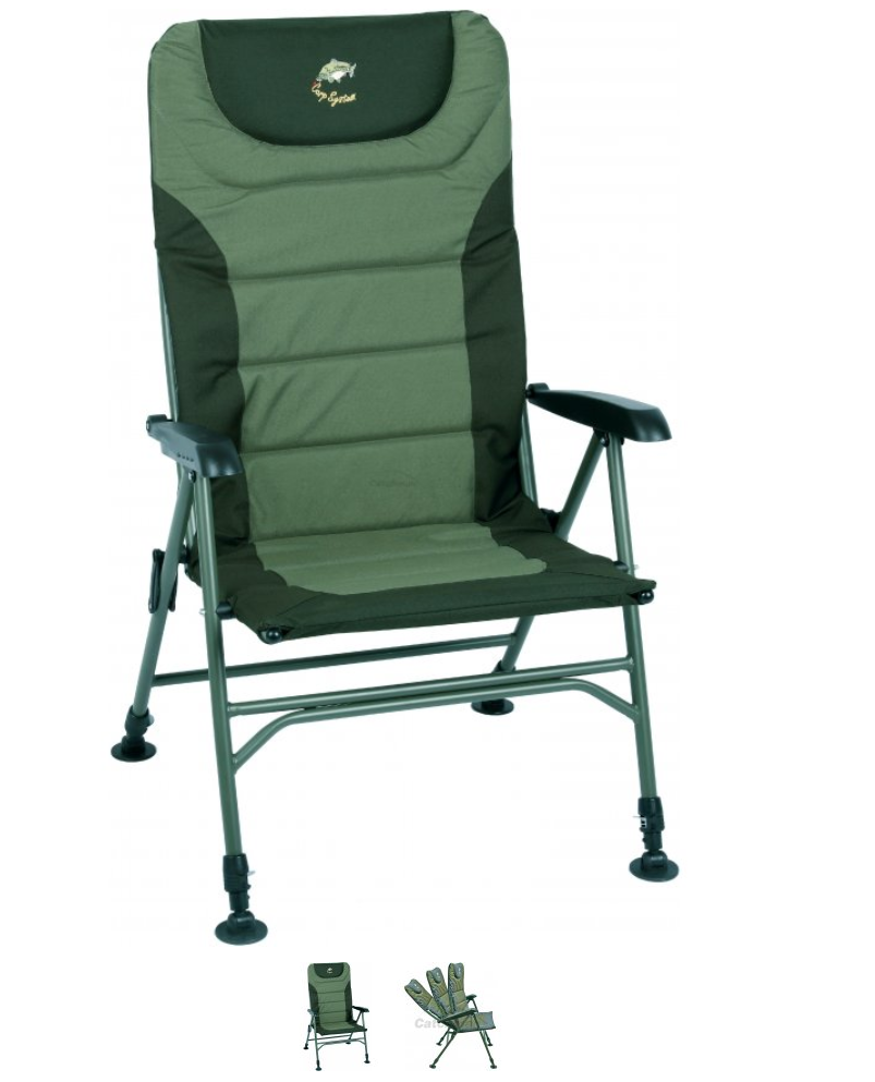Materiál - NYLON 600 D OXFORD + neoprén, váha křesílka 5,6 kg, plastové područky, speciální systém k nastavení opěrky zad, velké dosedací patky stavitelných nohou, průměr trubek - 22 mm.