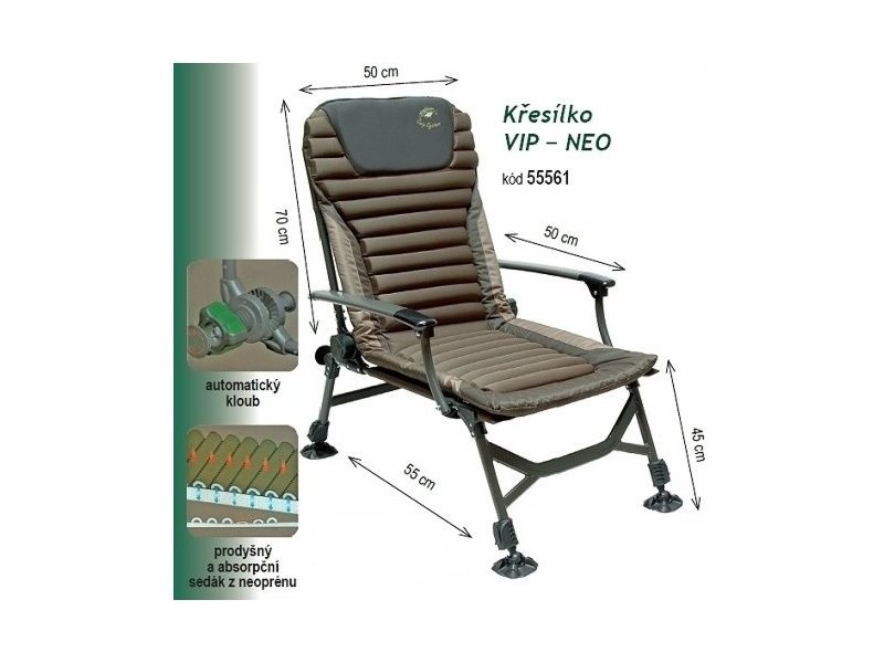 Vrchol luxusního kaprařského křesílky. Nový prodyšný materiál Vám zaručí pohodlí za každého počasí. Sedák z neoprénu.