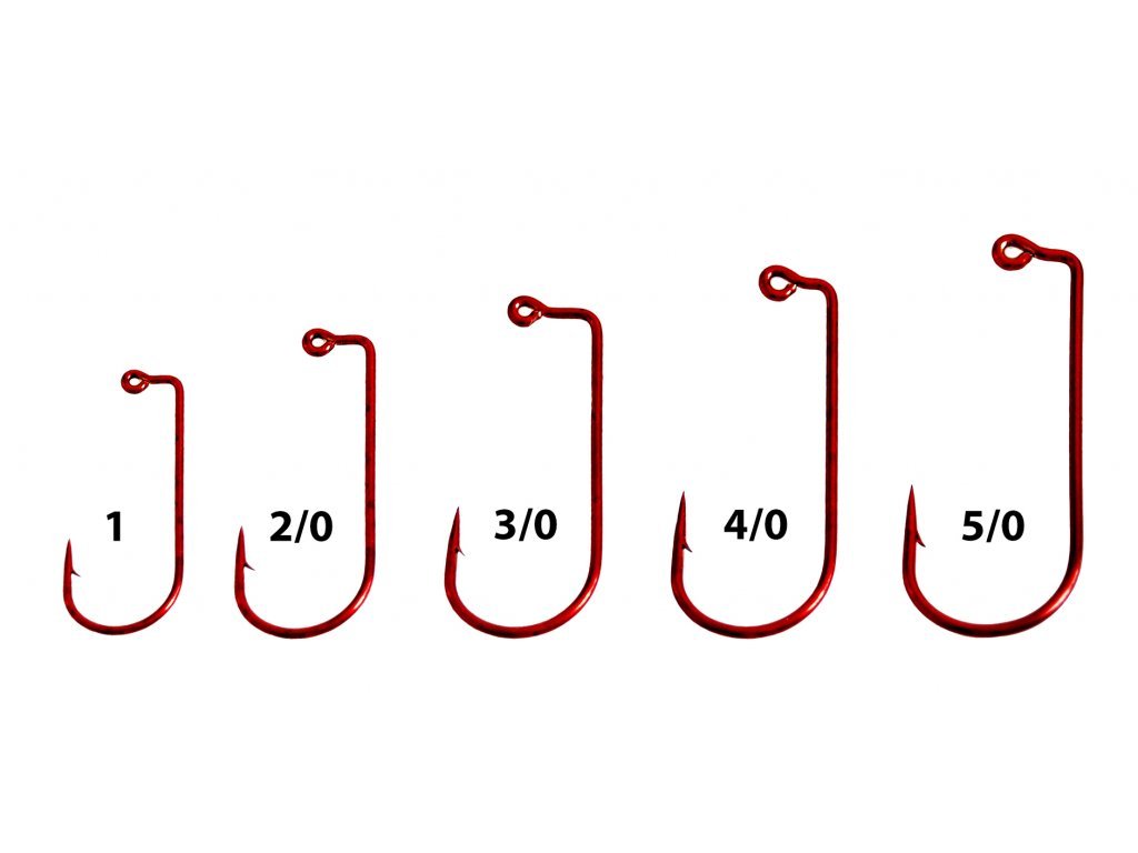 Háček červené barvy určený k výrobě jigů nebo pro pužití na dropshot