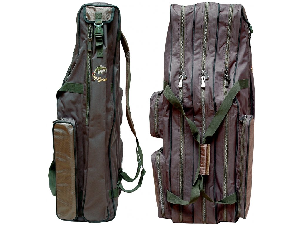 Tento precizně zpracovaný obal, pojme pruty s navijáky, krmení , nástrahy, vidličky, podběrák a spoustu rybářských drobností. Dlouhá kapsa na podběrák a vidličky, kapsa na malé boxy a box na návazce, velká kapsa na Carpbox a menší kapsa na drobnosti. Pouzdro můžete přenášet v ruce za určená madla, nebo jako batoh s nastavitelnými popruhy.