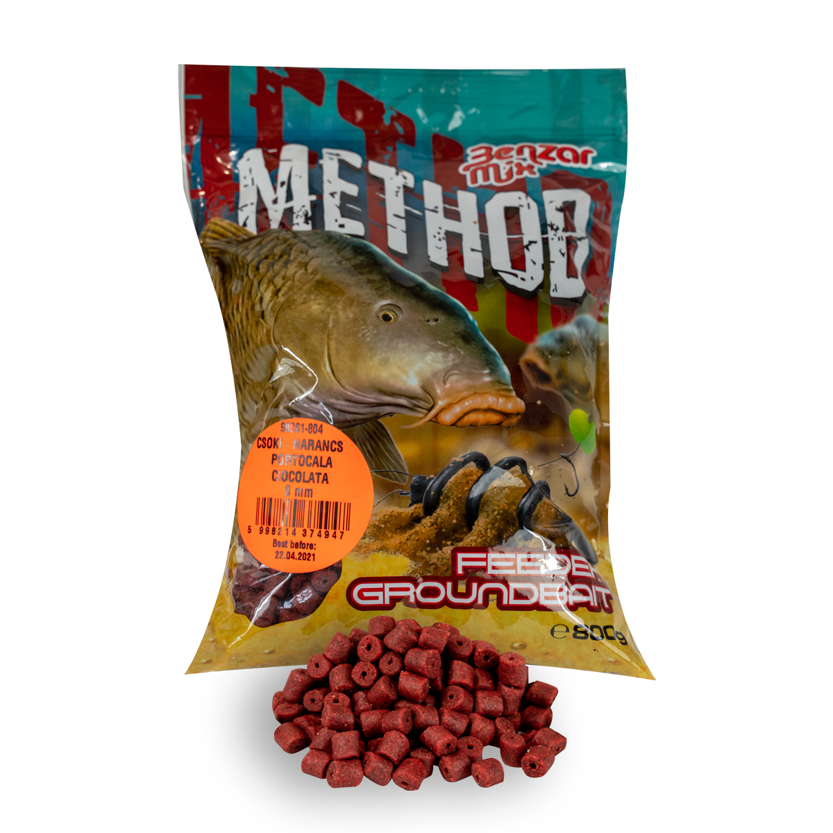 Benzár Mix Série Method – Čokoládově – pomerančové sáčkové pelety dostupné v úspěšných kombinacích vyhotovené podle receptury Zsolta Benzára. Při krmných směsích a 2mm method peletách se série rozrostla o pelety větších rozměrů.