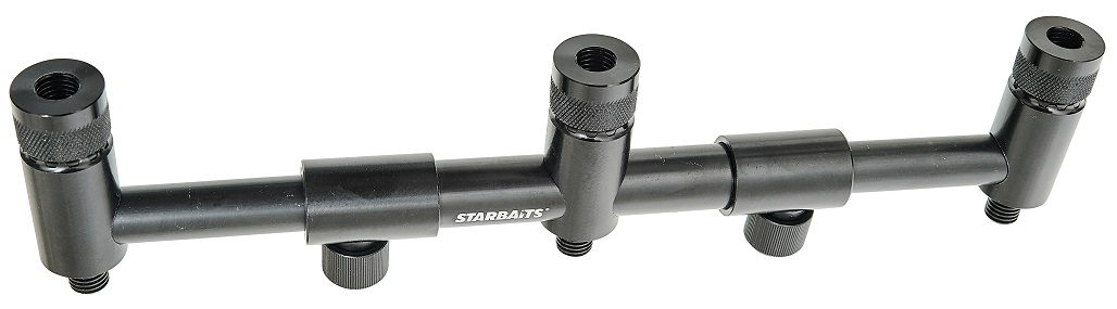 Teleskopická hrazda na 2 pruty v černém matném designu. Velké pojistná matice, kterou nelze ztratit, pro pohodlnou aretaci. Pevný a odolný materiál. Horní univerzální závit na signalizátory, držák prutu atd. je umístěn na pevném magnetu. Lze si tedy příslušenství jednoduše oddělit od hrazdy bez nutnosti šroubování. Délka 28-40 cm.
