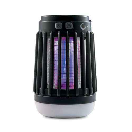 Lampa na hubení komárů, které přitahuje, zachycuje a zabíjí. Lampu lze dobíjet přes USB kabel nebo přes vestavěný solární panel.