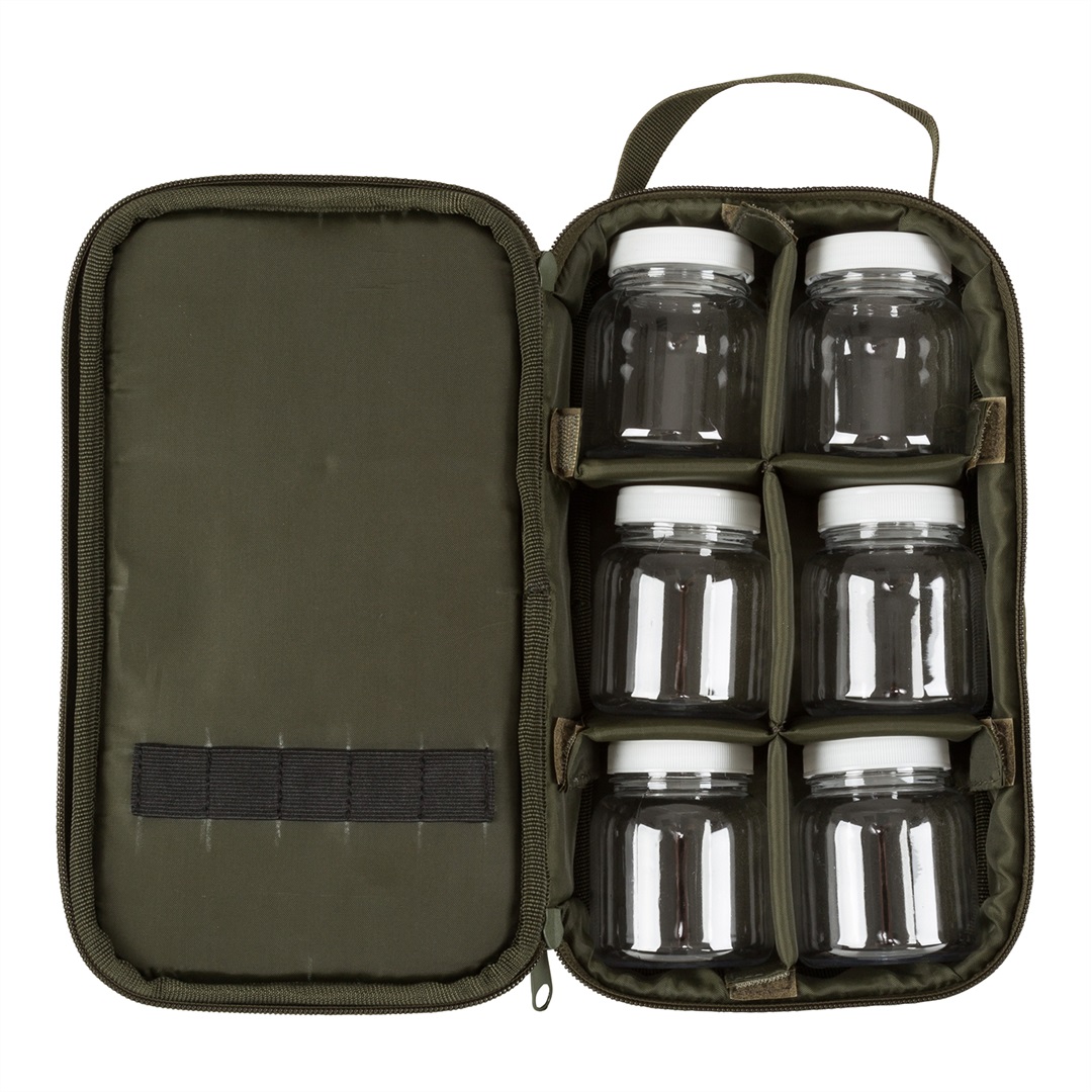 JRC Defender Hookbait Pouch je kompaktní taška se 6 plastovými nádobami. Plastové dózy mají robustní šroubovací víčka a jsou proto ideální i pro dipované nástrahy. Na vnitřní straně krytu najdete úložný prostor pro drobné pomůcky.