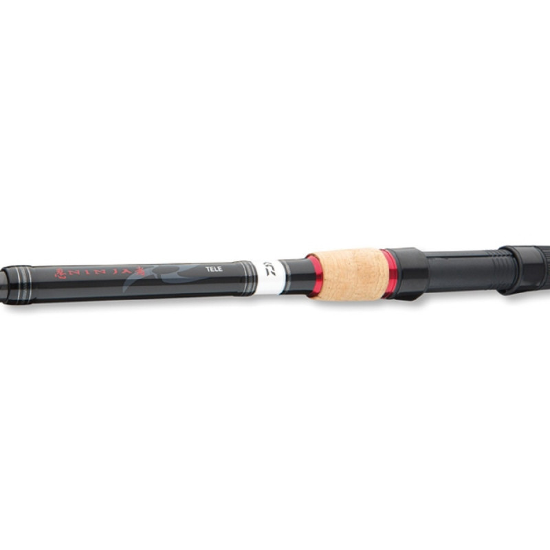 S pruty Ninja X Tele přináší DAIWA širokou řadu univerzálně použitelných teleskopických prutů. Série Ninja X má perfektní akci, která je naprosto srovnatelná s akcí konvenčních dělitelných prutů a je založena na prémiovém karbonovém blanku a kvalitních očkách. Tyto pruty skvěle pracují v kombinaci s gumovými nástrahami, woblery atd. Pruty mají velmi citlivou kontrolu nástrahy a těžko je rozeznáte od běžných, dělitelných prutů. Silná páteř a rychlá akce ŠPIČKY jsou jedny z charakteristických vlastností, které vám umožní nahodit na opravdu velkou vzdálenost. Prut skvěle absorbuje výpady ryb při souboji a zdolávání. Samozřejmě se tyto pruty hodí i pro lov s libovolnou návnadou, ať už cílíte na jakoukoliv rybu. S prutem Ninja X Tele dostanete optimálně vyvážený, lehký a prémiový teleskopický prut s vysokou kvalitou, za naprosto fantastickou cenu.
