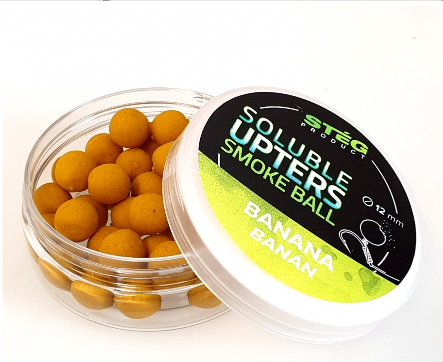 Novinka od maďarské společnosti STÉG - SOLUBLE UPTERS SMOKE BALL. Jsou rozpustné neutrálně vyvážené nástrahy ve velikosti 12mm. Nástrahy jsou dodávány v různých příchutích. Nástraha se postupně rozpouští a uvolňuje aroma a kouřový mrak, čímž neskutečně láká ryby.