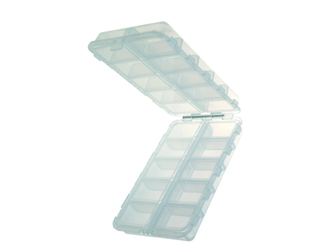 Krabička na drobnosti oboustranná se samostatně uzavíratelnými přihrádkami.