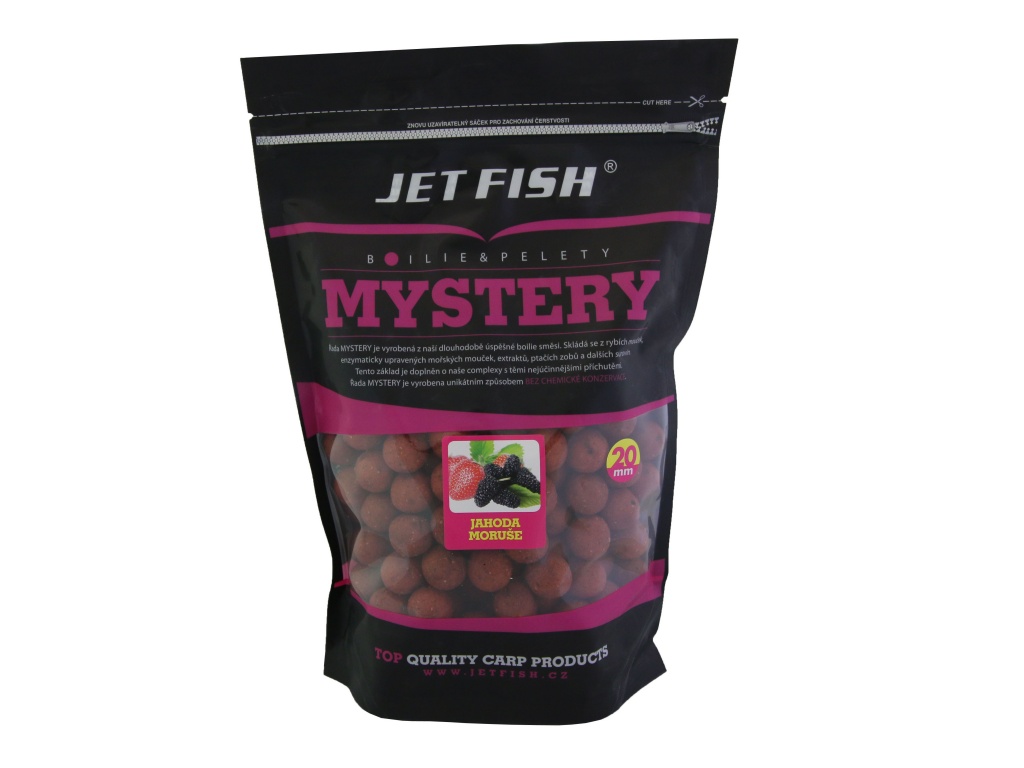 Při sestavování této řady boilie šlo především o vytvoření nejrychleji fungující nástrahy na krátkodobý i střednědobý rybolov. Boilie je sestavené na bázi těch nejkvalitnějších rybích mouček, rozpustných rybích produktů, mořských extraktů a extrudovaných ptačích zobů, podobně jako Seafood, a proto je také tak účinné. Další výhodou této řady je, že se každé boilie skládá ze dvou příchutí. Jak jsme zjistili při testování, pro rychlé chytání je to účinnější než klasické příchutě, a hlavně se tím odlišíte od všech ostatních. Povedlo se i nadále zachovat příznivou cenu, i když toto boilie je kvalitativně podstatně výše nejen kvůli zcela nové receptuře. Nové je rovněž i balení v kbelících 3 kg/2,7kg (dle průměru). Kbelíky jsou potištěné a po spotřebování boilie je můžete dále používat například na krmení. Boilie Mystery je určené na rychlé chytání, protože se ve vodě postupně omílá, a tím láká kapry ke krmení. Ty díky omílání boilie a uvolňování drobných částeček do okolí propadají tzv. žracímu šílenství. Boilie Mystery je vhodné, díky své rychlé účinnosti, i pro závodní rybolov a je boiliem budoucnosti pro váš úspěšný lov! Bez chemické konzervace.