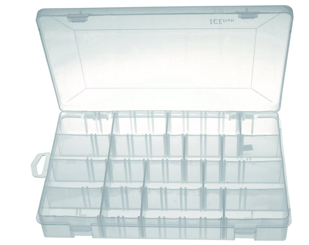 Krabička se stavitelnými přihrádkami na twistery a jigové hlavičky.