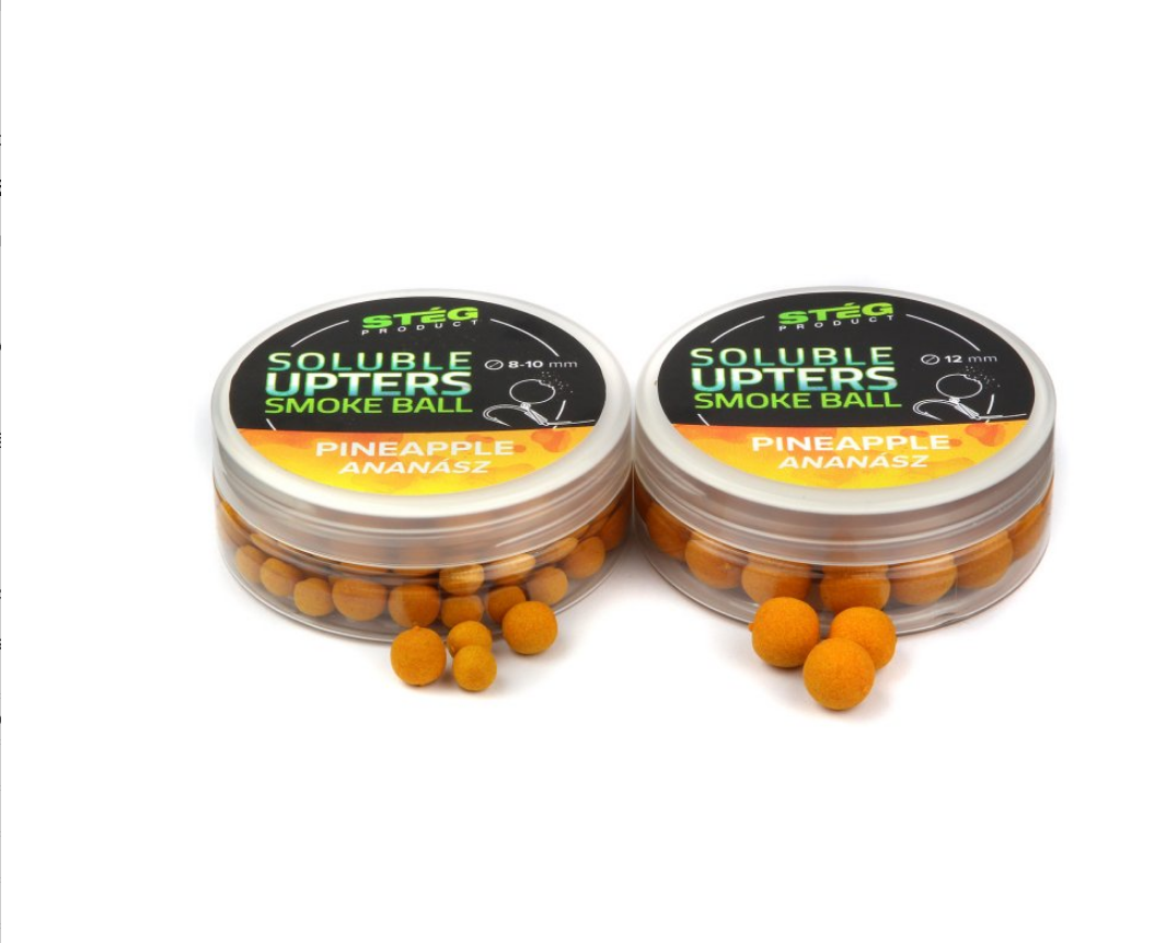 Novinka od maďarské společnosti STÉG - SOLUBLE UPTERS SMOKE BALL. Jsou rozpustné neutrálně vyvážené nástrahy ve velikosti 8-10mm. Nástrahy jsou dodávány v různých příchutích. Nástraha se postupně rozpouští a uvolňuje aroma a kouřový mrak, čímž neskutečně láká ryby.
