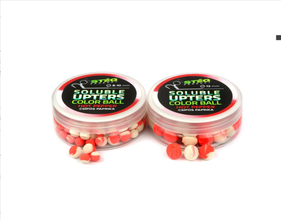 Barevně a ještě barevněji - to je Soluble UpTers Color Ball! Soluble UpTers Color Ball je rozpustná vyvážená nástraha s extrémně silnou vůní a jasnými barvami. Dvě velikosti a mix barev jedné příchutě vám pomůže vybrat tu správnou variantu.