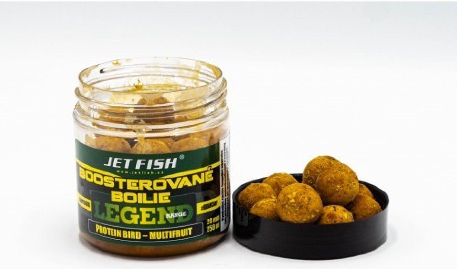 Jet Fish vyvážené boilie Legend range 250ml 24mm Protein Bird Multifruit