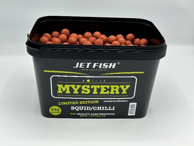 Při sestavování této řady boilie šlo především o vytvoření nejrychleji fungující nástrahy na krátkodobý i střednědobý rybolov. Boilie je sestavené na bázi těch nejkvalitnějších rybích mouček, rozpustných rybích produktů, mořských extraktů a extrudovaných ptačích zobů, podobně jako Seafood, a proto je také tak účinné. Další výhodou této řady je, že se každé boilie skládá ze dvou příchutí. Jak jsme zjistili při testování, pro rychlé chytání je to účinnější než klasické příchutě, a hlavně se tím odlišíte od všech ostatních. Povedlo se i nadále zachovat příznivou cenu, i když toto boilie je kvalitativně podstatně výše nejen kvůli zcela nové receptuře. Nové je rovněž i balení v kbelících 3 kg/2,7kg (dle průměru). Kbelíky jsou potištěné a po spotřebování boilie je můžete dále používat například na krmení. Boilie Mystery je určené na rychlé chytání, protože se ve vodě postupně omílá, a tím láká kapry ke krmení. Ty díky omílání boilie a uvolňování drobných částeček do okolí propadají tzv. žracímu šílenství. Boilie Mystery je vhodné, díky své rychlé účinnosti, i pro závodní rybolov a je boiliem budoucnosti pro váš úspěšný lov! Bez chemické konzervace.