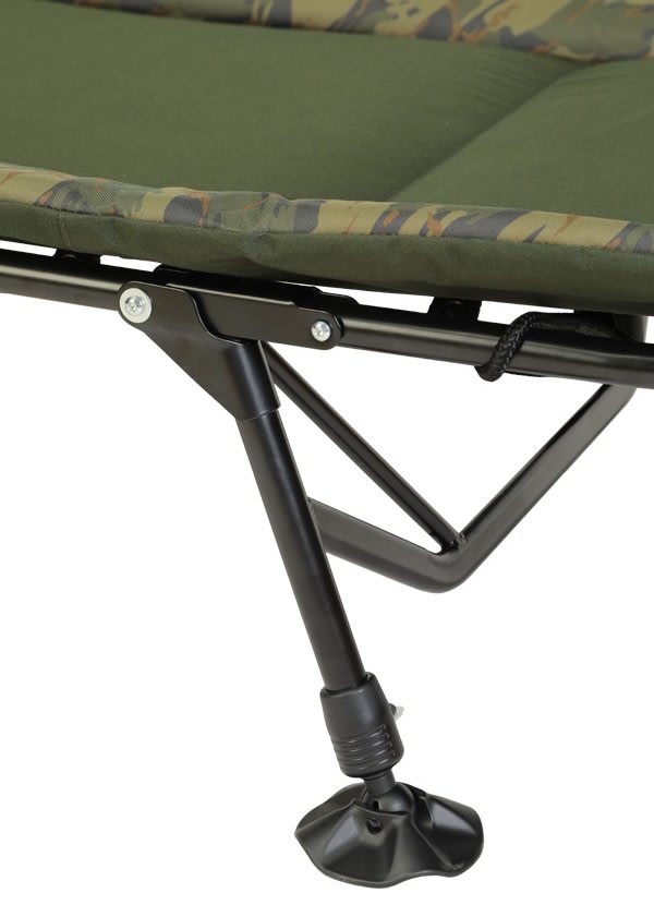 Kvalitně zpracovaná konstrukce má vysokou nosnost do 150kg. Nožičky lehátka jsou zakončeny velkými packami proti zaboření do bláta. Každý rybář si může na tomto lehátku nastavit požadovanou tuhost matrace.