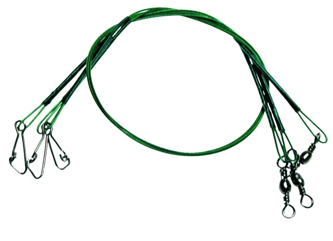 Ocelové, plastem potažené lanko s karabinkou a obratlíkem. 3 kusy v balení!