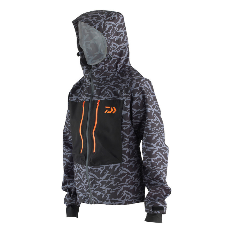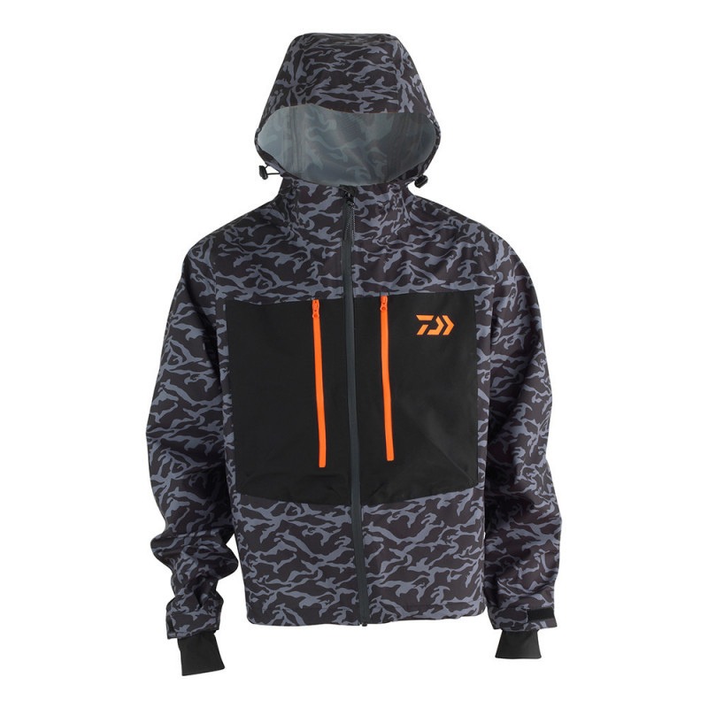 Vysoce kvalitní prodyšná brodicí bunda v exkluzivní šedé kamufláži pro baltský lov mořských okounů a pro sladkovodní lov přívlačí. Moderní materiál zajišťuje lehkost a vynikající pohodlí při nošení. Tato brodicí bunda DAIWA se vyznačuje vynikajícím poměrem ceny a kvality a vysokou ochranou před vniknutím vody a studeného větru díky nepromokavosti 10.000mm. Oblast ramen a loktů byla speciálně navržena tak, aby umožňovala maximální pohyblivost při rybolovu a nabízela dokonalé pohodlí při používání. Těsné neoprenové manžety zabraňují vniknutí vody a větru přes paže. Všechny zipy jsou vodoodpudivé a zabraňují vypadnutí drobných předmětů z kapes.