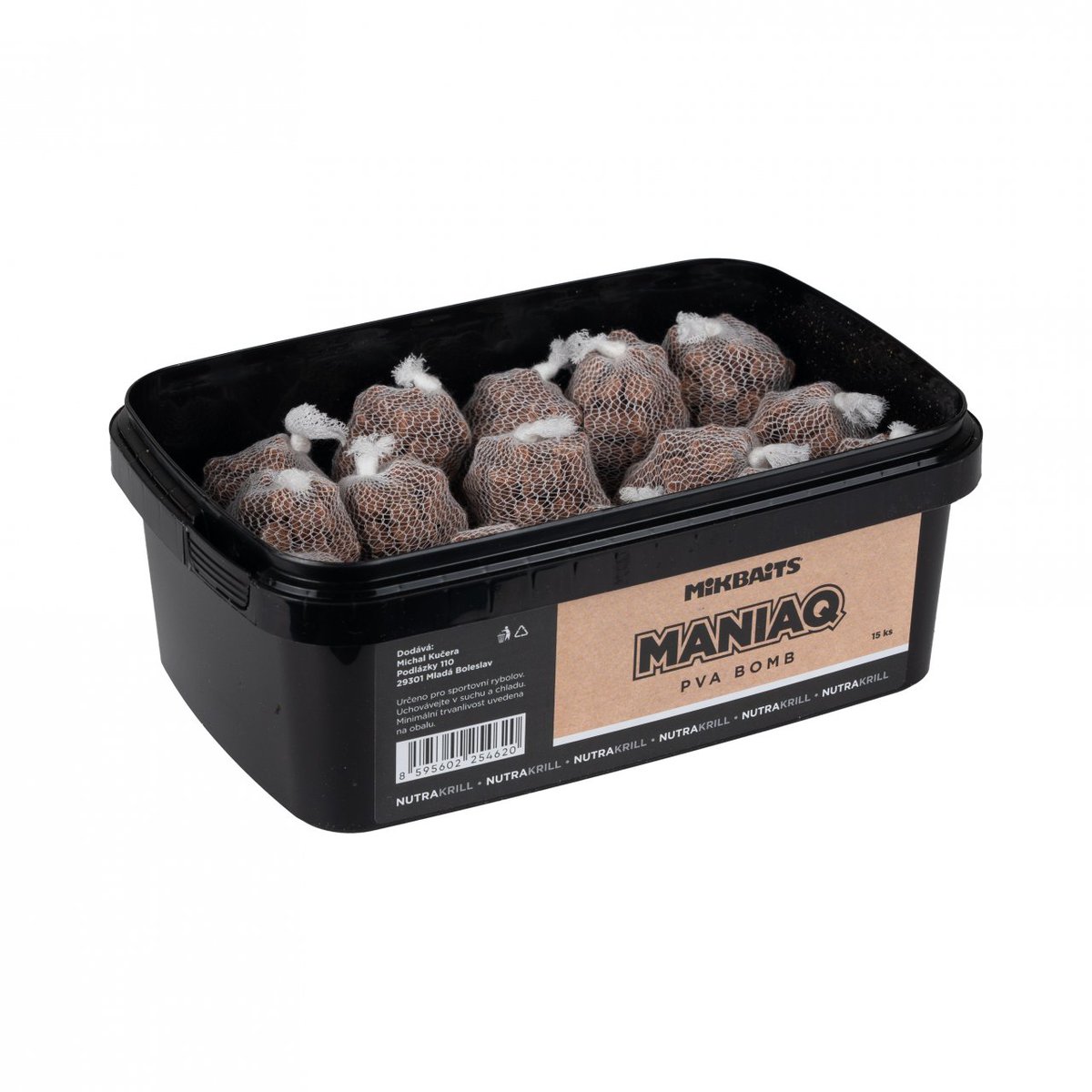 NutraKRILL PVA Bomb jsou punčochy z prvotřídního PVA naplněné peletami této příchutě. Šetří nejen váš čas, ale i vaše peníze. Pelety mají rychlý rozpad, aby začaly okamžitě pracovat a přitahovaly ryby. Doporučujeme používat spolu s boilie a dalšími produkty NutraKRILL.