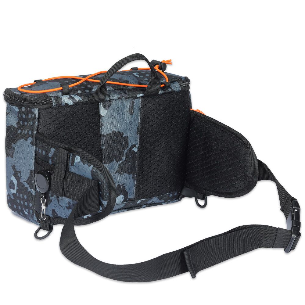 Pření kapsa s integrovaným cvakátkem vlasce - Dvě větší krabičky (27,5 x18 cm) v hlavní části tašky - Boční síťová kapsa na láhev s vodou - Vodu odpudivá látka 420D v kamuflážovém vzoru - Rozměry ledvinky: 28x12x20cm - Rozměry krabičeK: 27,5x18x4,2cm - Hmotnost: 0,82g