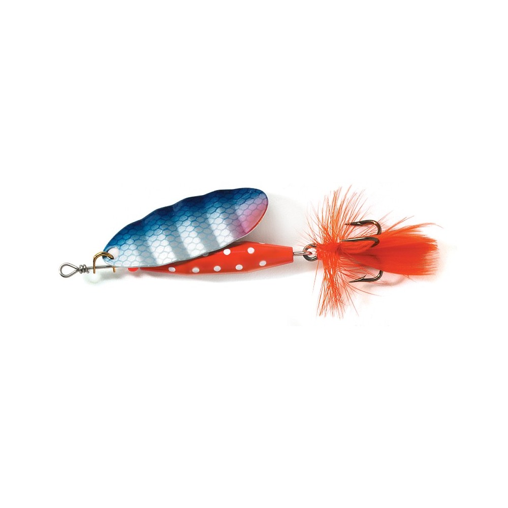 Třpytky Abu Garcia Reflex Red s červeným tělíčkem a bílými tečkami, to vše doplňuje červené chmýří, které nástraze dodává maximální atraktivitu.