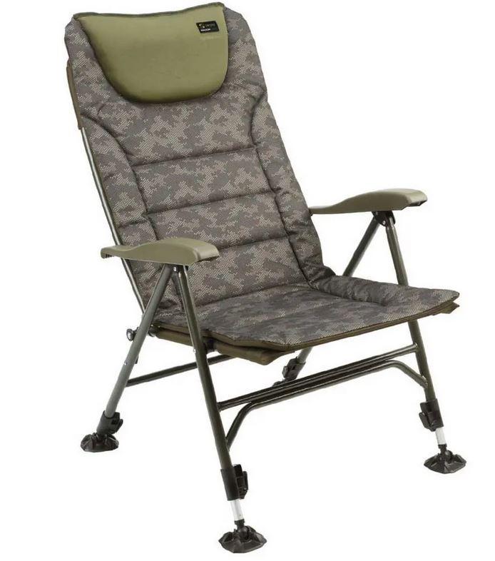 Křeslo ve stylu HI-BACK, nově v CAMO provedení, nabízí fantastický komfort a bederní podporu pro ty nejnáročnější. S aretací v několika úhlech a nastavitelností všech noh, je toto křeslo ideální i pro náročné nastavení na březích.