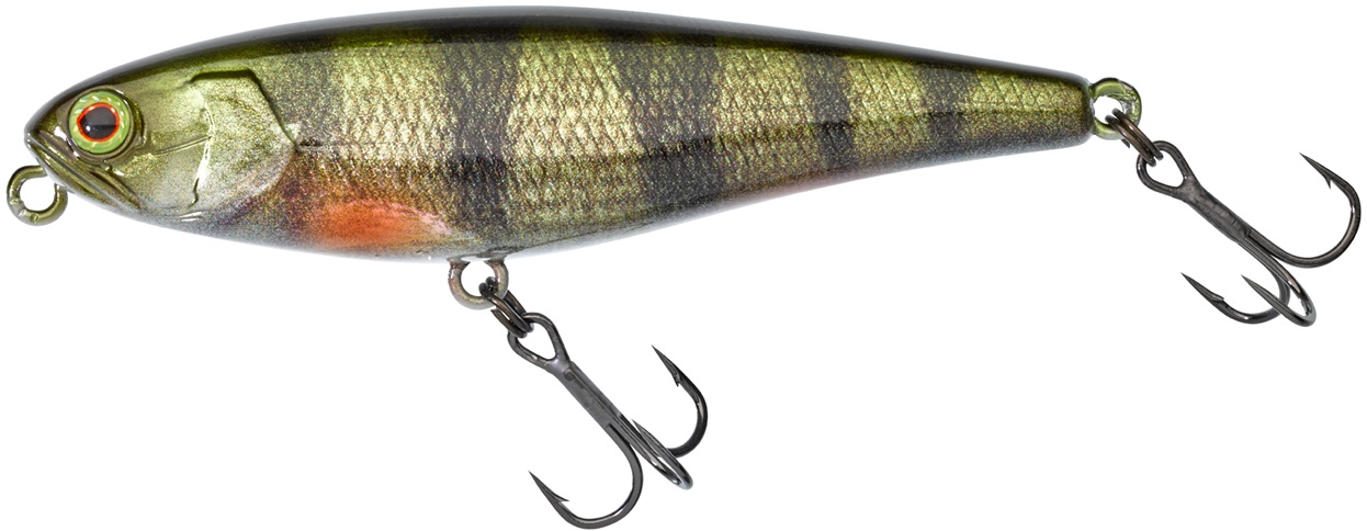 Hladinový wobler napodobující unikající rybku. To nejlepší mezi woblery na lov velkých bolenů, jelců, okounů nebo štik. Wobler je vybaven realistickýma 3D očima, které lákají dravce k útoku. Uvnitř jsou tungstenové kuličky, které mají dvě funkce. Při hodu se soustředí v zadní části wobleru pro dlouhé a přesné hody. Při oživování agresivně chrastí a wobler vytváří neodolatelné zvukové efekty provokující dravce.
