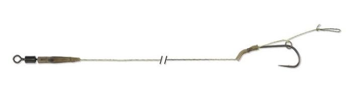 Koncová montáž z návazce Camo Core, háčku Razor Point Long Shank velikosti 4 a rychle vyměnitelného obratlíku č. 8 s minipřevlekem. Vytvarovaný adaptér Kicker Line Aligner pomáhá zvládnout rychlé otočení hrotu háčku. Tato všestranná montáž je perfektní jak pro nástrahy u dna, tak i pro plovoucí nástrahy.