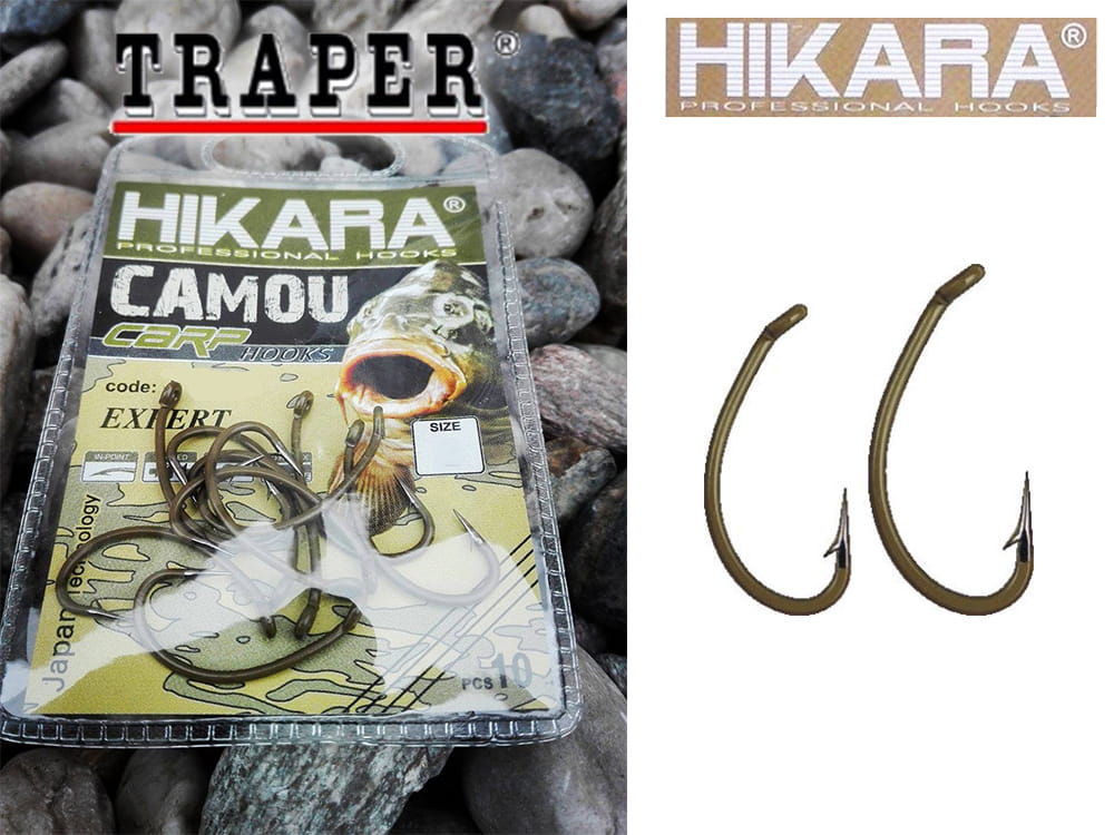 Extra pevný kaprový háček potažený silikonem v Camo barvě.