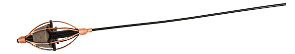 Na chrániči uzlu upevněný krmný košík pro ty, kteří myslí nejen na rybolov, ale i na životní prostředí. Bez použití olova vyrobený krmný košík méně znečišťuje vodu při odtrhnutí, jako je druhové s obsahem olova.