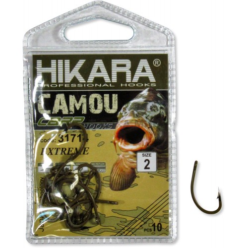 Extra pevný kaprový háček potažený silikonem v Camo barvě.