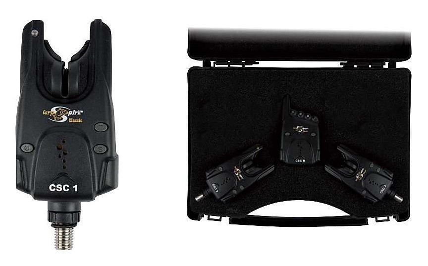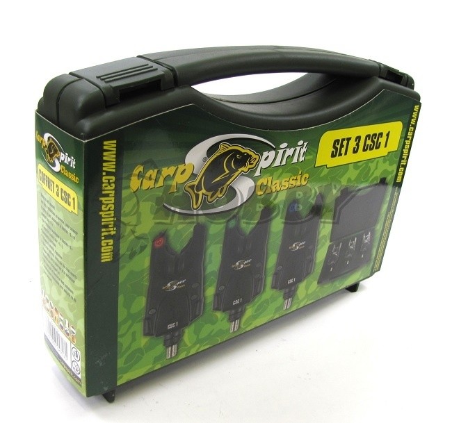 Zcela nová bezdrátová sada 3+1 signalizátorů od francouzské společnosti Carp Spirit. Nastavení, citlivosti, hlasitosti i tónu. Zdířka pro svítící swinger. Obsah sady: 3× hlásič CSC 3 + 1× přijímač CSC R + 1× praktický kufřík s výplní. Popis hlásiče CSC 3: • Funkce nočního světla: Pro zapnutí nočního světla při zapnutém hlásiči podržte tlačítko "S", k tomu stiskněte tlačítko "T". Pro vypnutí nočního světla při zapnutém hlásiči podržte tlačítko "S" a k tomu opět stiskněte tlačítko "T" • Funkce Autotest dosahu hlásiče • Funkce Detekce vybité baterie: Při slabých bateriích hlásič varuje uživatele krátkým pípnutím • Dosah hlásiče: cca 100 metrů, dosah závisí na okolních podmínkách • Hlásič vyžaduje 1 ks 9V baterie (není součástí balení) • Ruční hlavní vypínač a ovládání hlasitosti - 1. Zapnutí (stisknout a podržet po dobu 2 sekund), 2. Hlasitost (5 úrovní), 3. Vypnutí (stisknout a podržet po dobu 2 sekund) • Ovladač tónu (4 úrovně) a ovladač citlivosti • Výkonný vodotěsný reproduktor, zesílený šroub s maticí • Konektor pro svítící swinger, protiskluzové uložení prutu Popis přijímače CSC R: • 4-DIP přepínače slouží k synchronizaci s vysílači (přepněte oba 4-DIP přepínače v alarmu a přijímači do stejné polohy) • Hlavní vypínač a ovládání hlasitosti (Zapnutí / Hlasitost / Vypnutí) • Ovladač tónu • Výkonný vodotěsný reproduktor • Přijímač vyžaduje 3 baterie typu AAA s napětím 1,5 V (není součástí balení)