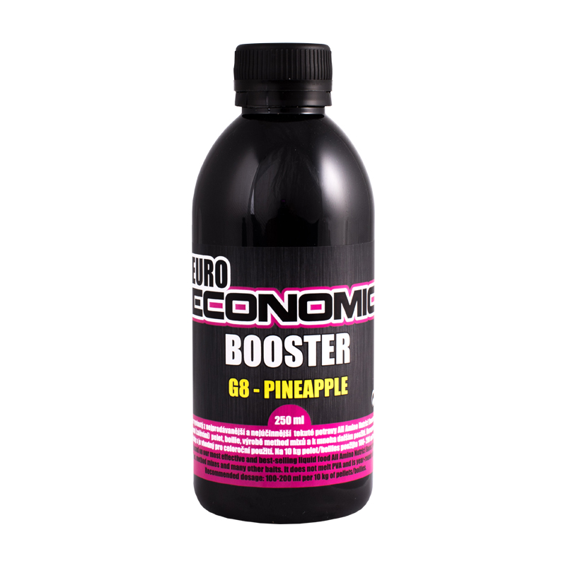 Booster v příchuti Euro Economic je zde! Aktivátor vyvinutý z nejprodávanější a nejúčinnější tekuté potravy All Amino Nutric! Booster je určen k oživení (zalévání) pelet, boilie, výrobě method mixů a k mnoha dalším použití. Nerozpouští PVA. Zvyšuje trvanlivost a atraktivitu návnad. Velmi zajímavá cena/kvalita!