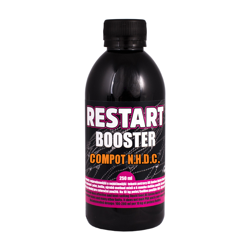 Booster v příchuti Restart je zde! Aktivátor vyvinutý z nejprodávanější a nejúčinnější  tekuté potravy All Amino Nutric! Booster je určen k oživení (zalévání)  pelet, boilie, výrobě method mixů a k mnoha dalším použití. Nerozpouští PVA. Zvyšuje trvanlivost a atraktivitu návnad. Velmi zajímavá cena/kvalita!