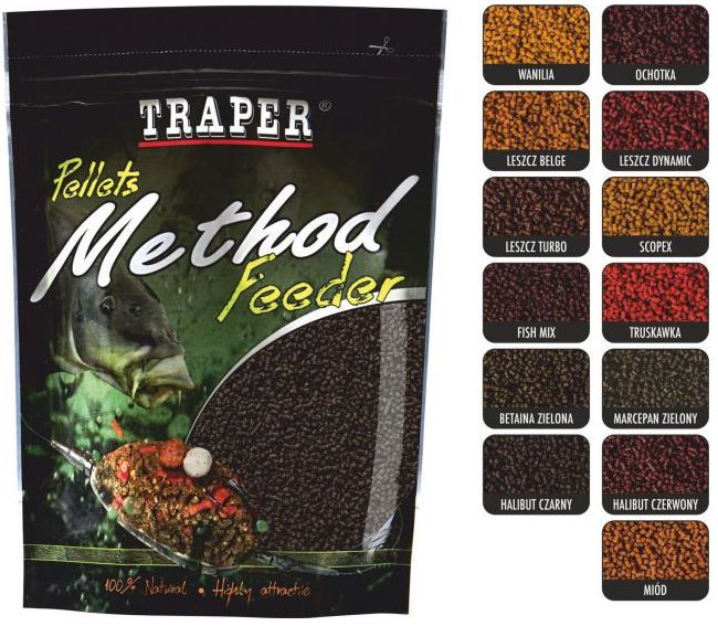 Speciální vnadící pelety určené pro lovnnou techniku Method Feeder. Pelety se skládají z přírodních složek se specifickými lepivými vlastnostmi, které postupně uvolňují mikročástice s aroma. Rozpustnost těchto pelet je 30 až 60 minut. Způsob přípravy k použití je velmi jednoduchý. Pelety zalijeme vodou a po jedné minutě přeceďte přes husté síto. Druhý způsob je postupné přidávání maleho množství vody za stálého míchání až do požadované konzistence. Po několika minutách jsou pelety připraveny k použití. Můžete vytvarovat koule k zakrmení lovného místa nebo použít do krmítka. Pelety lze použít i jako doplněk do krmítkových směsí.
