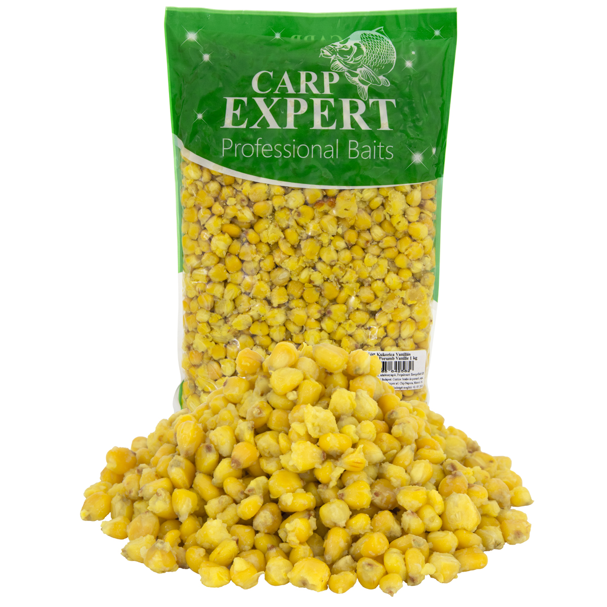 Drcené kukuřičné zrna stejné velikosti s velkou stabilitou na háčku. Nástrahy se vyrábějí bez umělých přísad
