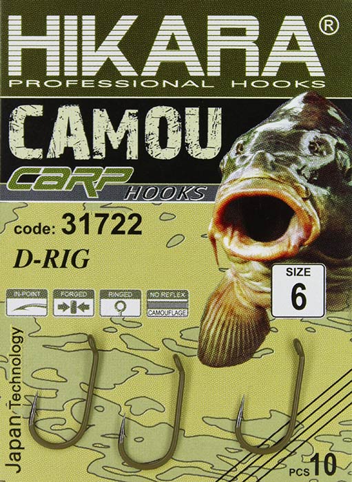 Extra pevný kaprový háček potažený silikonem v Camo barvě.
