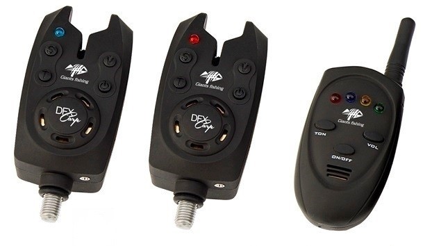 Nová bezdrátová sada hlásičů Giants Fishing DFX Carp je voděodolná s minimálním dosahem příjmu příposlechu 200 metrů. Sada je v takzvané pogumované úpravě, která zvyšuje její odolnost jak nárazům, tak vlhkosti. Hlásiče jsou vybaveny regulací hlasitosti „V“, tónu „T“ i citlivosti „S“. Hlásiče mají konektory pro připojení závěsných vahadlových signalizátorů. Celá sada je uložena v plastovém kufříku, který je dobře polstrovaný. Napájení hlásiče 9V baterie ( není součástí výrobku ) Napájení přijímače 1,5V AAA baterie( není součástí výrobku )