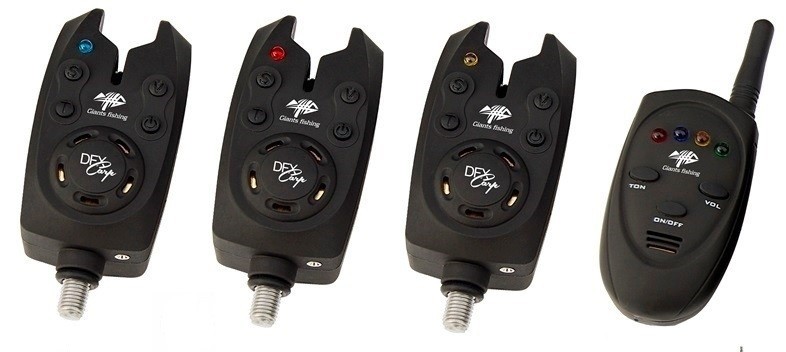 Nová bezdrátová sada hlásičů Giants Fishing DFX Carp je voděodolná s minimálním dosahem příjmu příposlechu 200 metrů. Sada je v takzvané pogumované úpravě, která zvyšuje její odolnost jak nárazům, tak vlhkosti. Hlásiče jsou vybaveny regulací hlasitosti „V“, tónu „T“ i citlivosti „S“. Hlásiče mají konektory pro připojení závěsných vahadlových signalizátorů. Celá sada je uložena v plastovém kufříku, který je dobře polstrovaný. Napájení hlásiče 9V baterie ( není součástí výrobku ) Napájení přijímače 1,5V AAA baterie( není součástí výrobku )