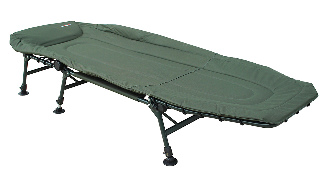 Lehátko Fishmaster s třemi páry nohou, ocelovou konstrukcí a matrací z 600D Oxford-Nylonu s termoizolační vrstvou. Celková nosnost je 130 kg. Lehátko má klouby sklonu zad, packy nohou s protiskluzovým dezénem, aretaci nohou proti jejich sklopení a jednoduchý stavitelný zámek.